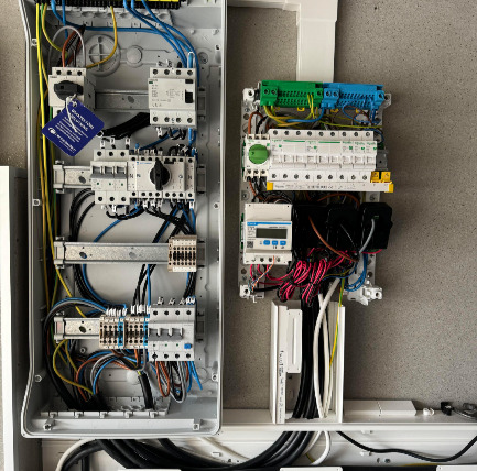 Ett exempel på en färdig ö-driftcentral där vi kompletterar med elcentral intill. Hela huset ligger under ö-drift i denna anläggning med undantag för uppvärmningen som i detta fall kopplas bort med kontaktorer för att säkerställa lång drifttid.